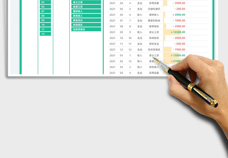 2022財務記賬管理-收支明細表(顏色免費下載包含