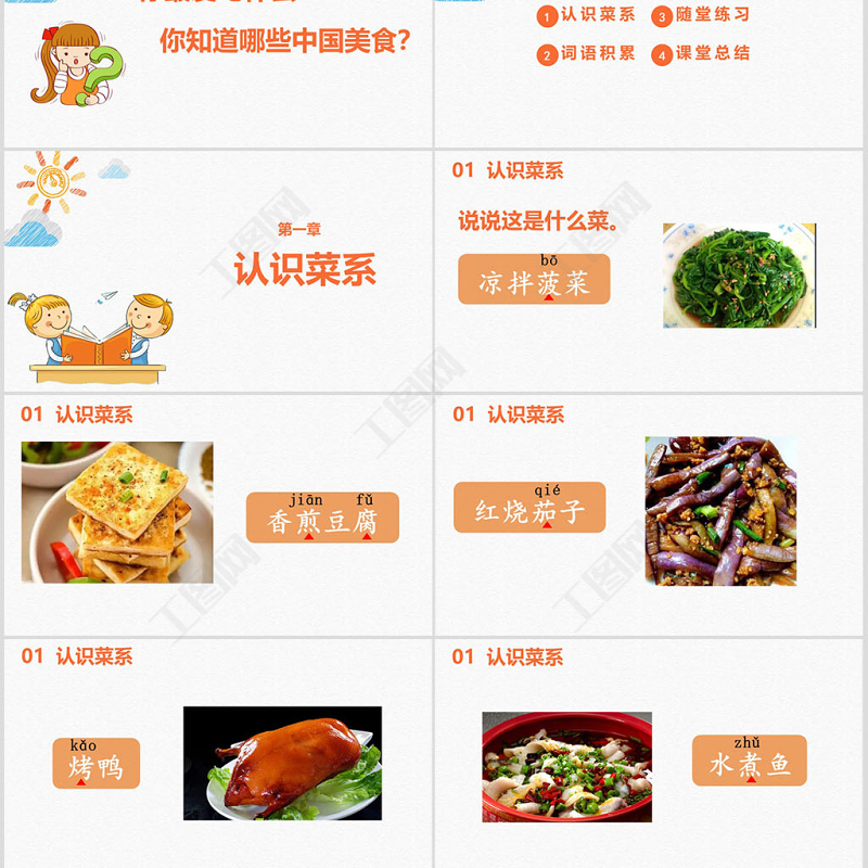 首頁 > PPT模板 > PPT課件模板 > 二年級下冊識字4 中國美食教育課件PPT模板.PPTX 【圖片、文字、動畫均可編輯】