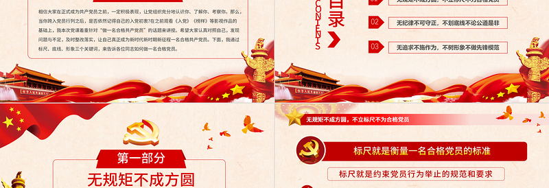 目錄CONTENTS無紀律不可守正,不劃底線不論公道是非無追求不施作為,不樹形象不做先鋒模范無規矩不成方圓,不立標尺不為合格黨員