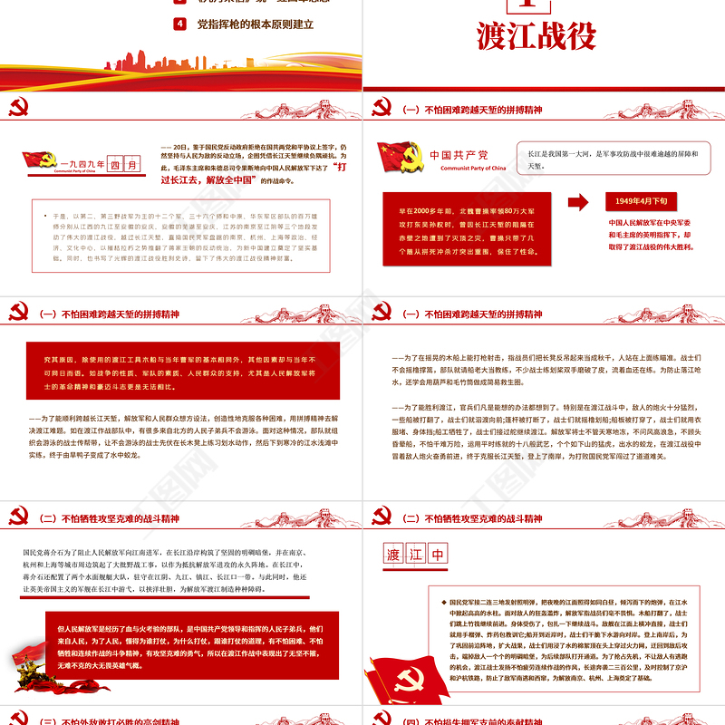 渡江精神PPT紅色莊嚴傳承渡江精神賡續紅色基因渡江戰役勝利73周年黨史學習課件 Array