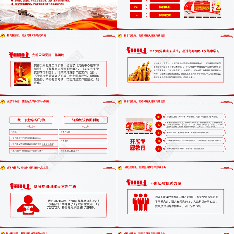 2021黨支部黨員大會PPT紅色大氣基層黨組織黨務(wù)工作總結(jié)問題分析及工作計(jì)劃黨課模板 Array