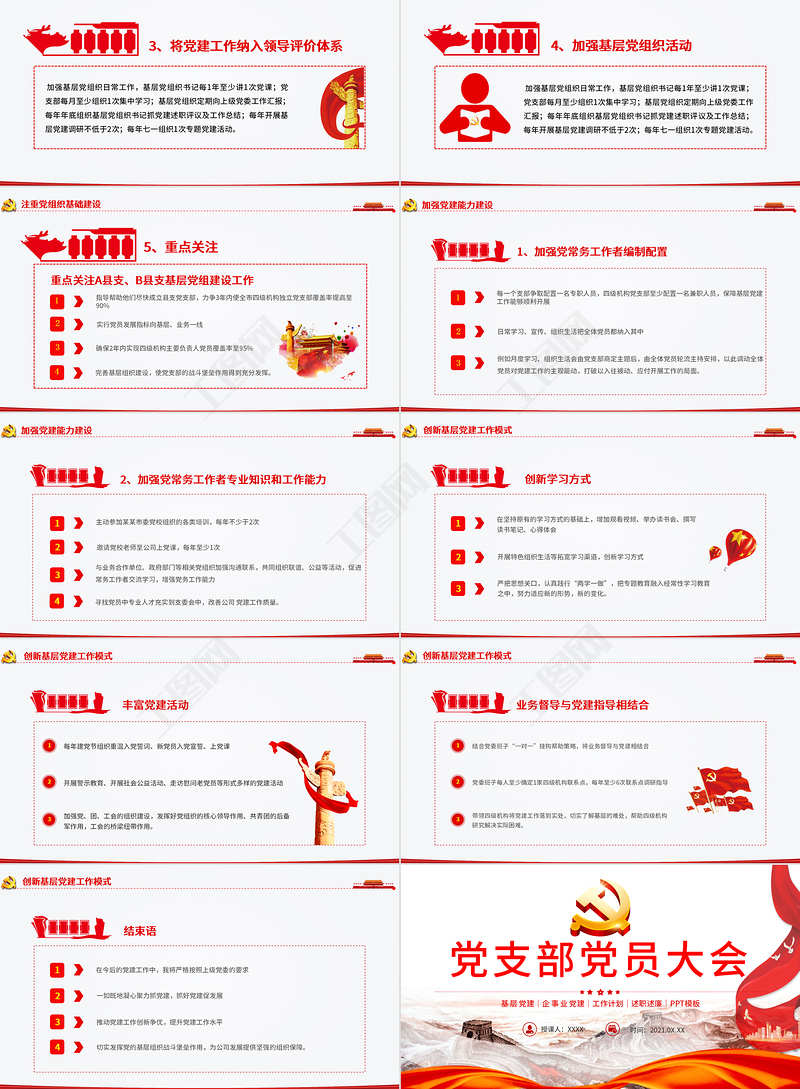 2021黨支部黨員大會PPT紅色大氣基層黨組織黨務(wù)工作總結(jié)問題分析及工作計(jì)劃黨課模板