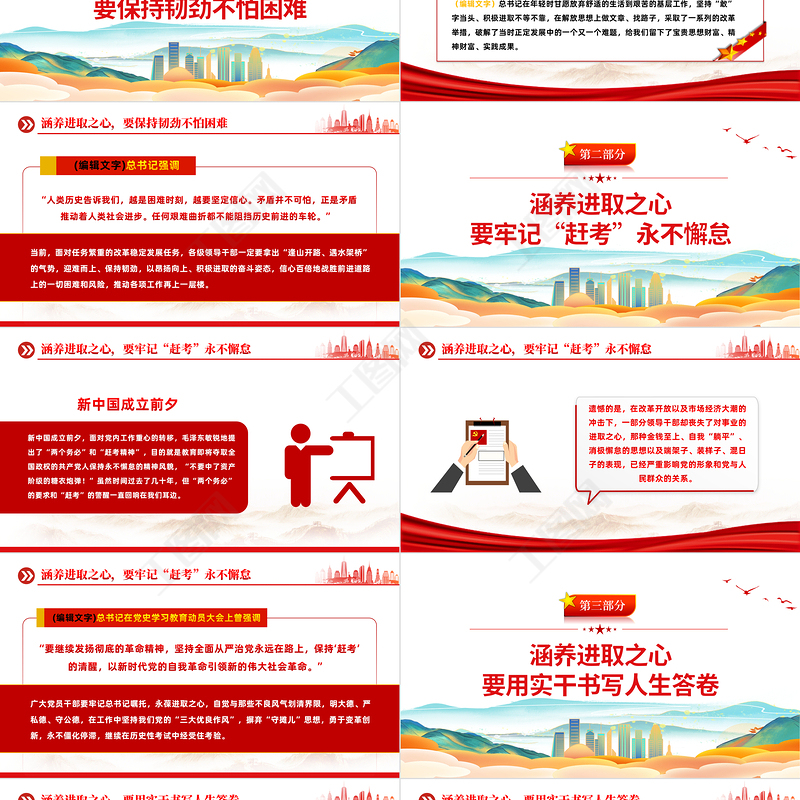 工圖網(wǎng)提供2022涵養(yǎng)進(jìn)取之心昂揚(yáng)奮斗姿態(tài)PPT紅色黨政風(fēng)黨員干部黨史學(xué)習(xí)教育專題黨建黨課課件模板下載供會(huì)員免費(fèi)下載。更多精彩黨課PPT素材,盡在工圖網(wǎng)。