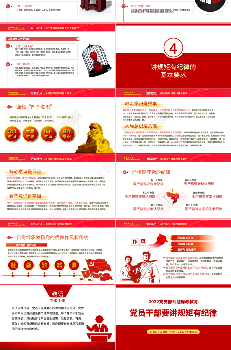 工圖網(wǎng)提供2022黨員干部要講規(guī)矩有紀律PPT黨建風(fēng)黨員干部廉政廉潔警示教育專題黨課課件模板下載供會員免費下載。更多精彩黨課PPT素材,盡在工圖網(wǎng)。