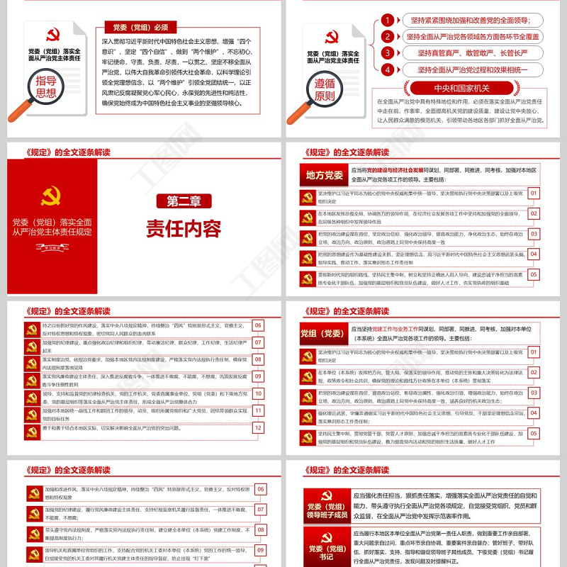 工圖網(wǎng)提供 紅色黨建黨政落實全面從嚴治黨主體責任PPT模板供會員免費下載。更多精彩黨課PPT素材,盡在工圖網(wǎng)。