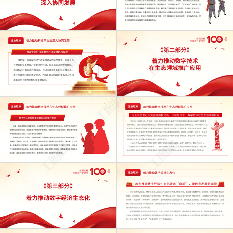 推動(dòng)生態(tài)經(jīng)濟(jì)和數(shù)字經(jīng)濟(jì)深度融合發(fā)展 PPT 紅色 精品 黨員干部 深入學(xué)習(xí) 《決議》 專(zhuān)題黨課 課件模板 Array