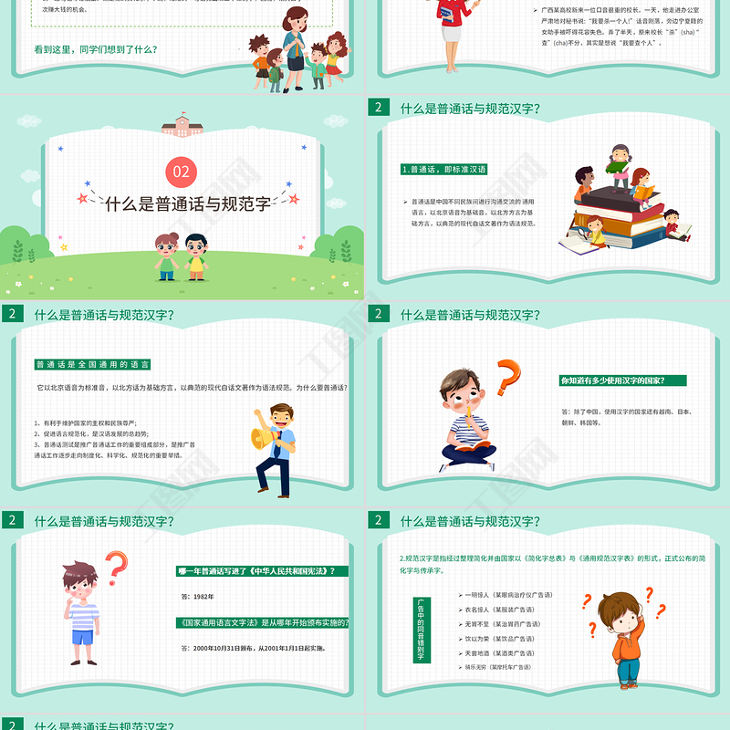 2021推廣普通話寫好規范字PPT卡通可愛九月普通話推廣宣傳周主題班會課件模板下載