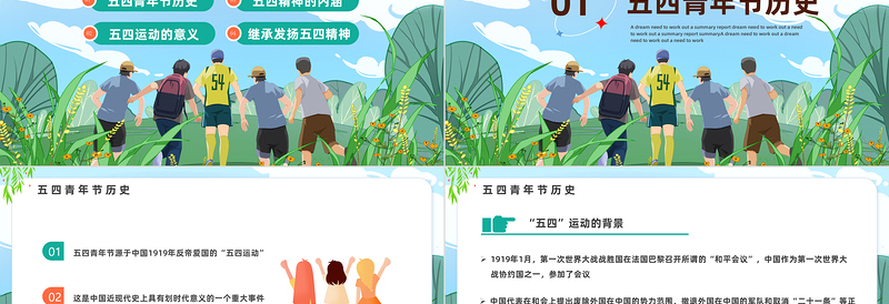 2023五月春意盎然青年風華正茂PPT卡通風風紀念五四運動104周年主題班會課件模板 Array