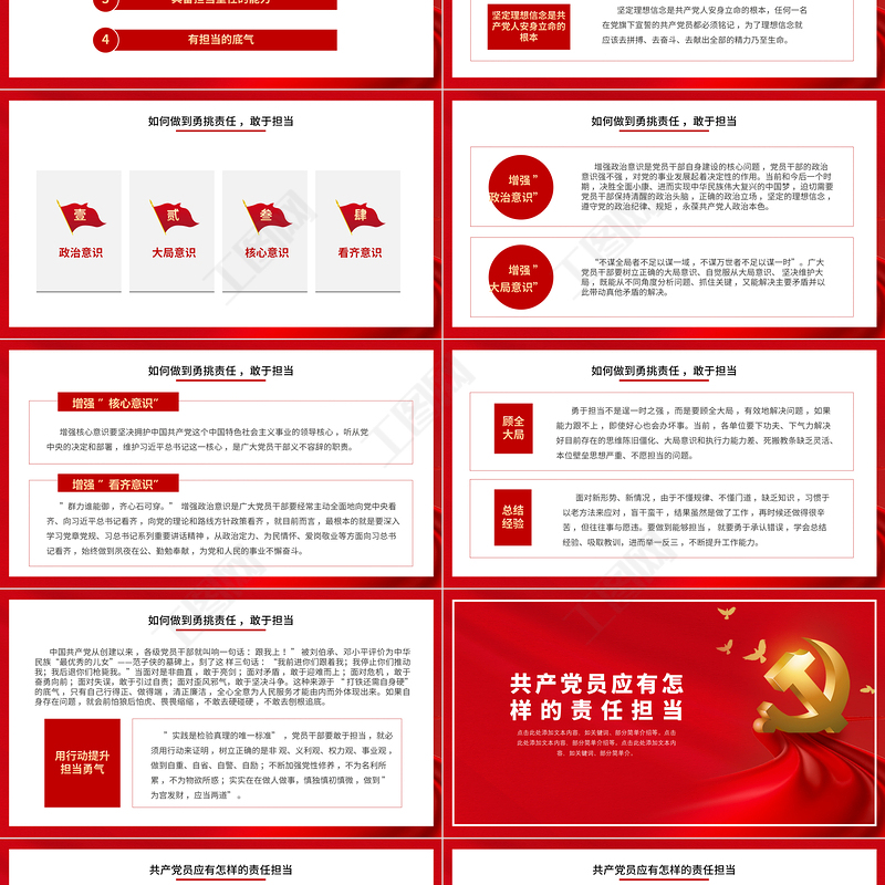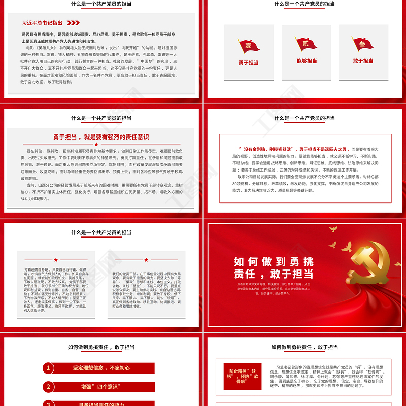 工圖網(wǎng)提供2021心懷責任敢于擔當PPT紅色質(zhì)感黨員干部全心全意為人民服務(wù)做合格黨員責任擔當黨課供會員免費下載。更多精彩黨課PPT素材,盡在工圖網(wǎng)。