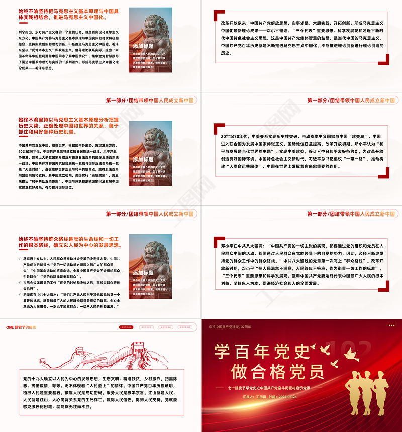 學百年黨史做合格黨員PPT紅色黨政風中國共產黨奮斗歷程與啟示慶祝建黨102周年專題黨課 Array