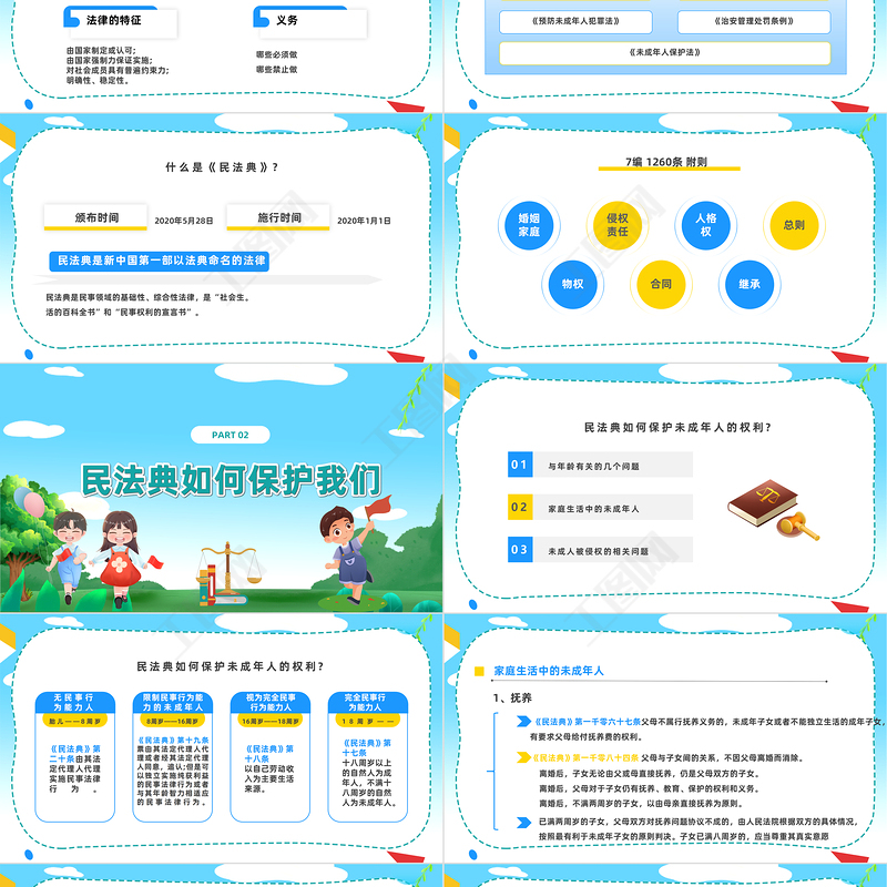 2023典亮青春護航成長PPT卡通風民法典進校園法律知識教育主題宣講班會課件模板下載 Array