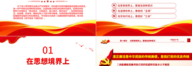 堅(jiān)守底線不越紅線PPT紅色簡(jiǎn)潔2023年機(jī)關(guān)黨支部基層黨支部開展黨風(fēng)廉政教育黨員培訓(xùn)作風(fēng)整頓專題廉政黨課課件 Array