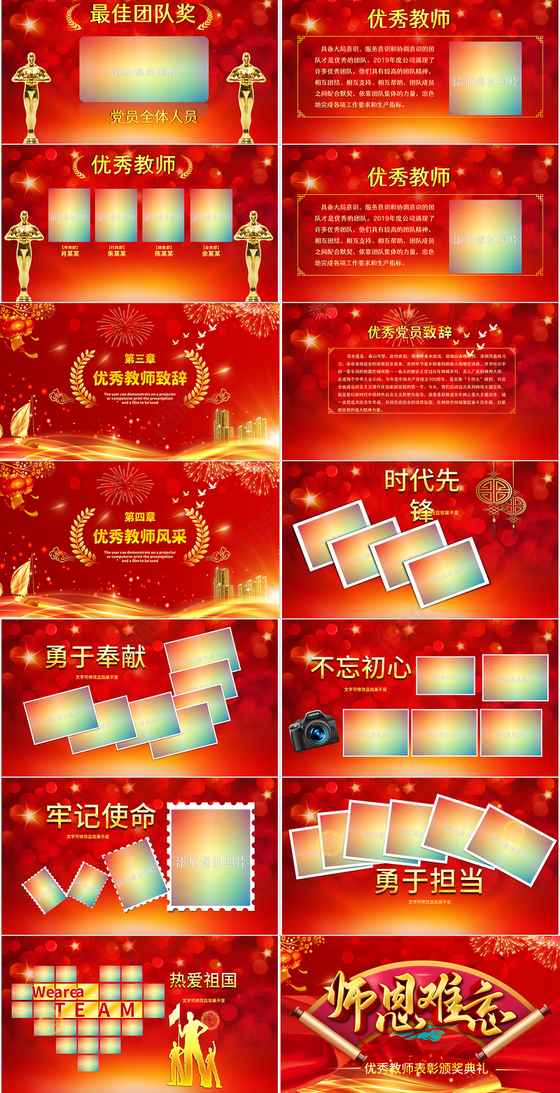 2021教師節頒獎晚會PPT紅色喜慶最美教師節優秀教師頒獎典禮模板下載