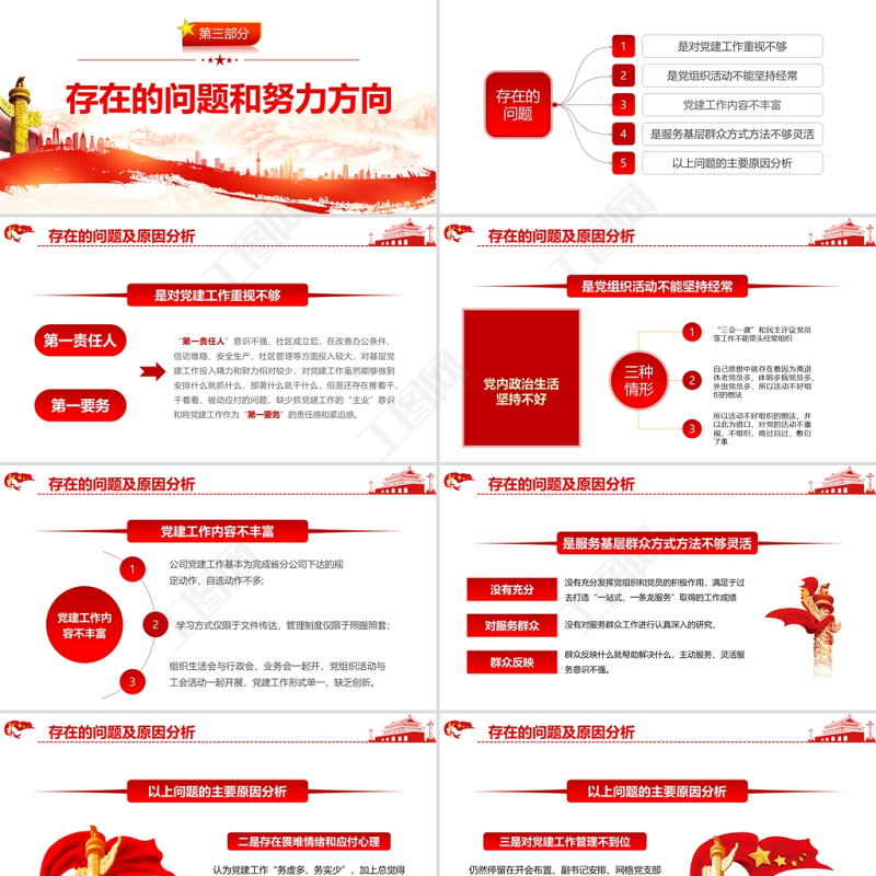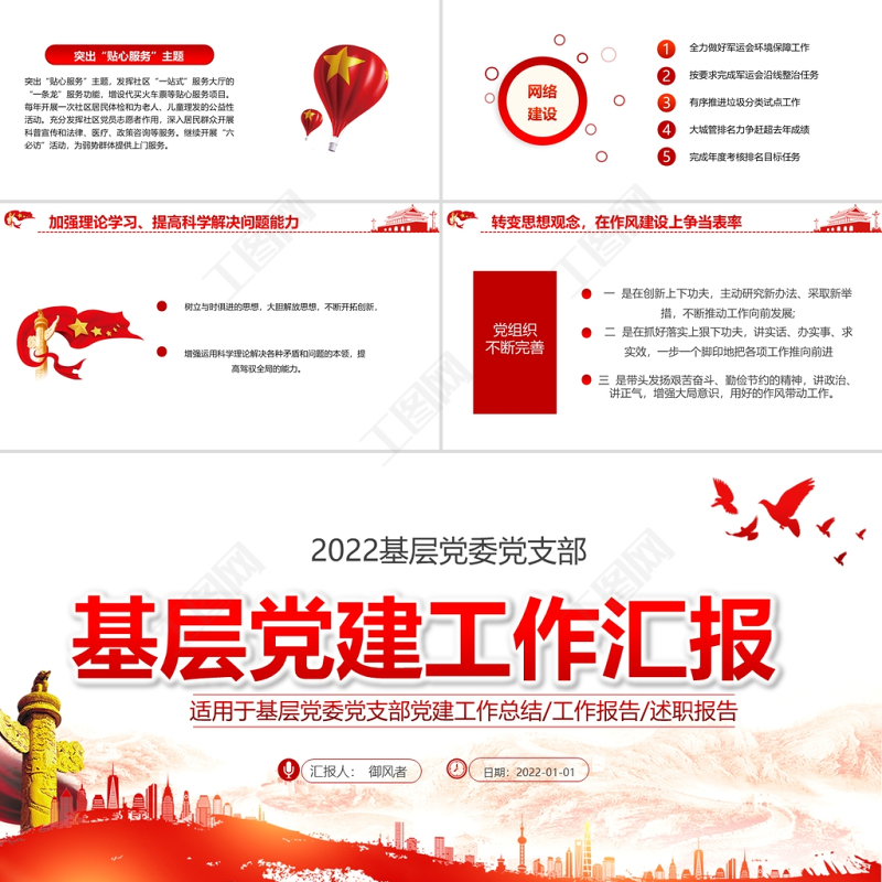 工圖網提供基層黨建工作匯報PPT黨政風黨支部年度工作情況介紹問題總結及新年工作思路報告黨建模板供會員免費下載。更多精彩黨課PPT素材,盡在工圖網。
