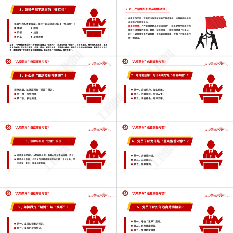 工圖網提供什么是中央六項禁令PPT精美簡潔黨的作風建設課件供會員免費下載。更多精彩黨課PPT素材,盡在工圖網。