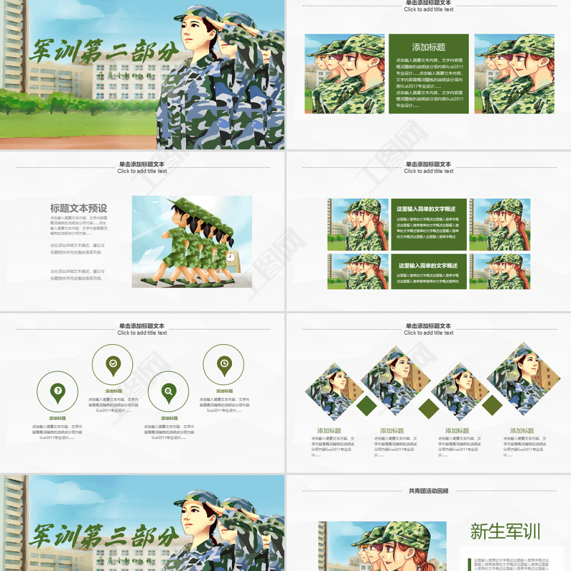 工圖網提供原創新生軍訓學生軍訓開學第一課PPT模板-版權可商用供會員免費下載。更多精彩黨課PPT素材,盡在工圖網。