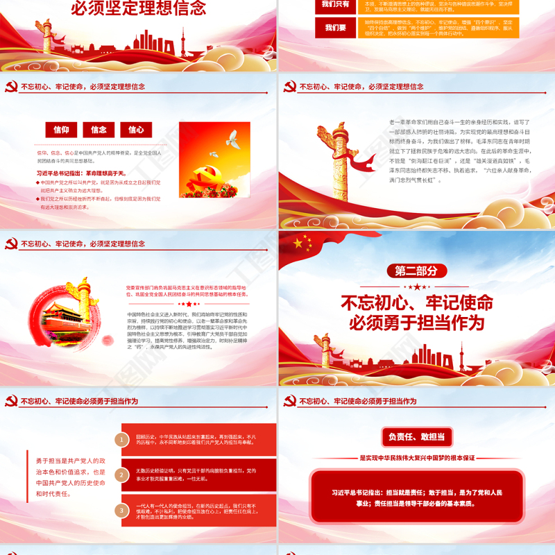 原創不忘初心牢記使命堅守信仰信念勇于擔當作為ppt-版權可商用