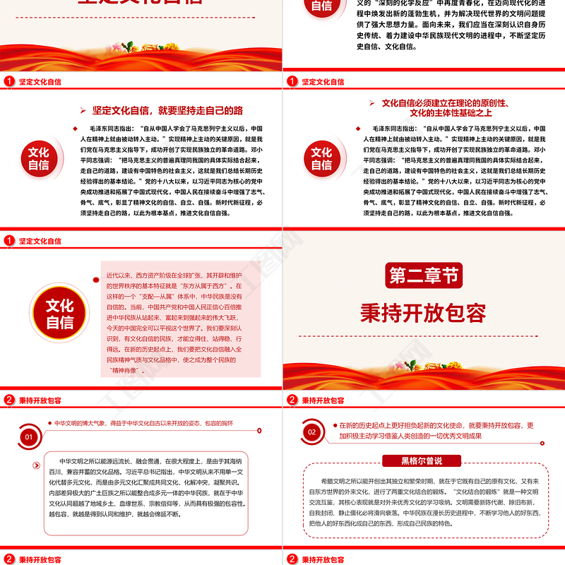 2023在新的歷史起點上更好擔負起新的文化使命ppt紅色黨政風堅定文化自信、秉持開放包容、堅持守正創新基層黨員黨組織專題學習課件 Array
