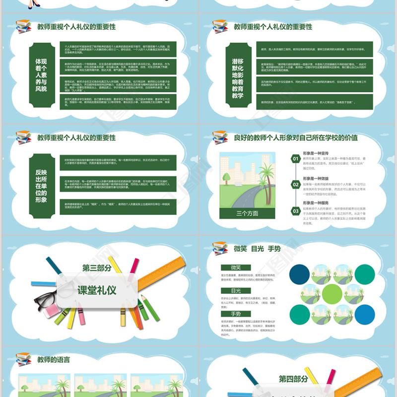 工圖網提供原創學校校園老師教師禮儀培訓課件PPT模板供會員免費下載。更多精彩黨課PPT素材,盡在工圖網。