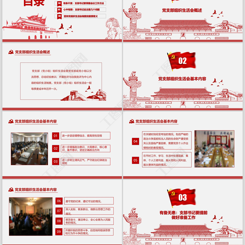 工圖網提供紅色簡潔大氣黨課基層黨支部黨員組織生活會學習PPT模板供會員免費下載。更多精彩黨課PPT素材,盡在工圖網。