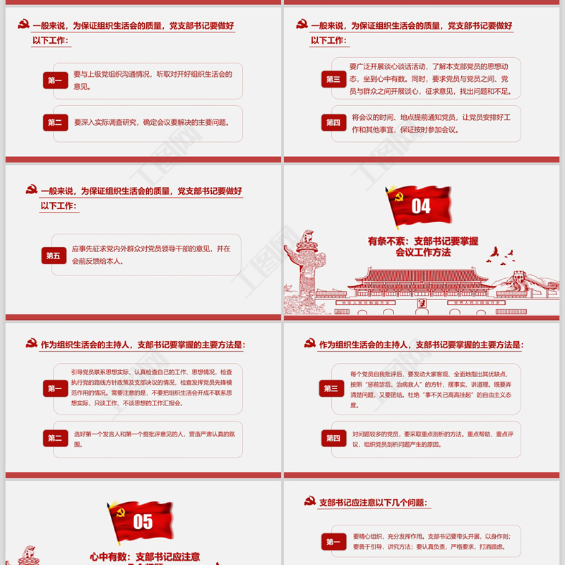 紅色,簡潔,大氣,黨課,黨支部組織生活會概述 Array