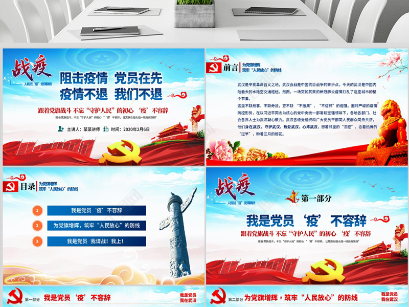 1我是黨員‘疫’不容辭3我是黨員 我請戰(zhàn)!我上!2為黨旗增輝,筑牢“人民放心”的防線 目錄為黨旗增輝筑牢“人民放心”的防線