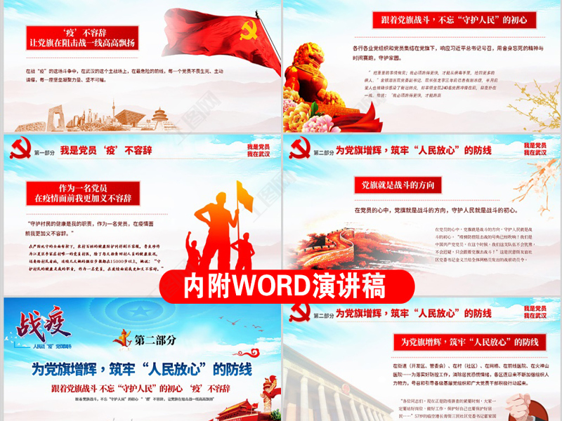 工圖網(wǎng)提供原創(chuàng)人民戰(zhàn)“疫”黨旗飄揚(yáng)我是黨員黨建黨課ppt供會員免費(fèi)下載。更多精彩黨課PPT素材,盡在工圖網(wǎng)。
