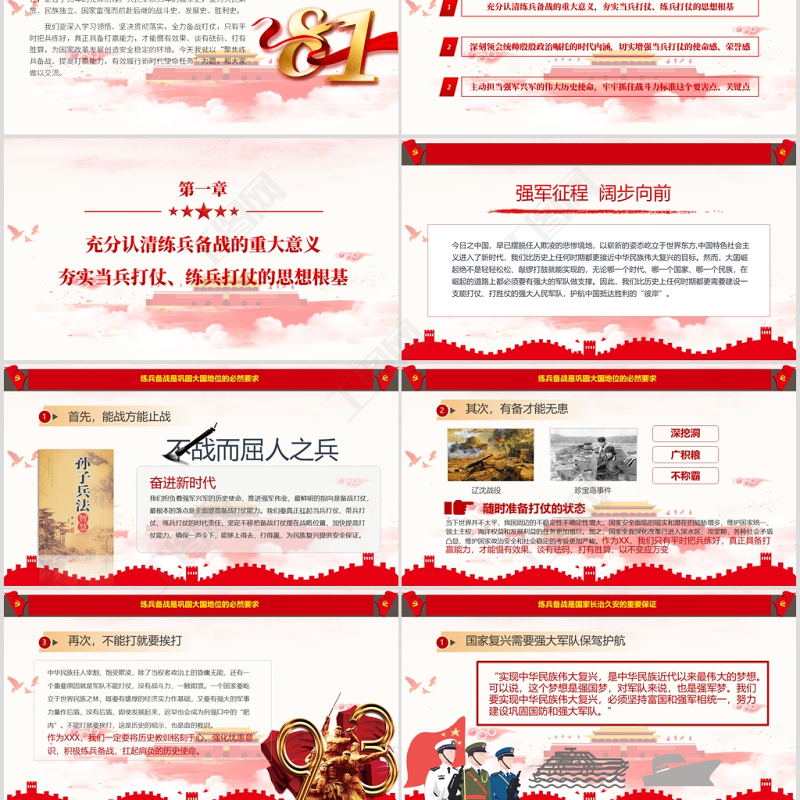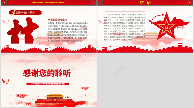 2020年建軍節慶祝建軍93周年有效履行新時代使命任務2 2020 八一 建軍節 軍史 軍魂 國防 國防教育 愛國教育 PPT模板 建軍93周年 黨政模板 黨政軍警 建軍 黨政工作 中國 黨政 Array