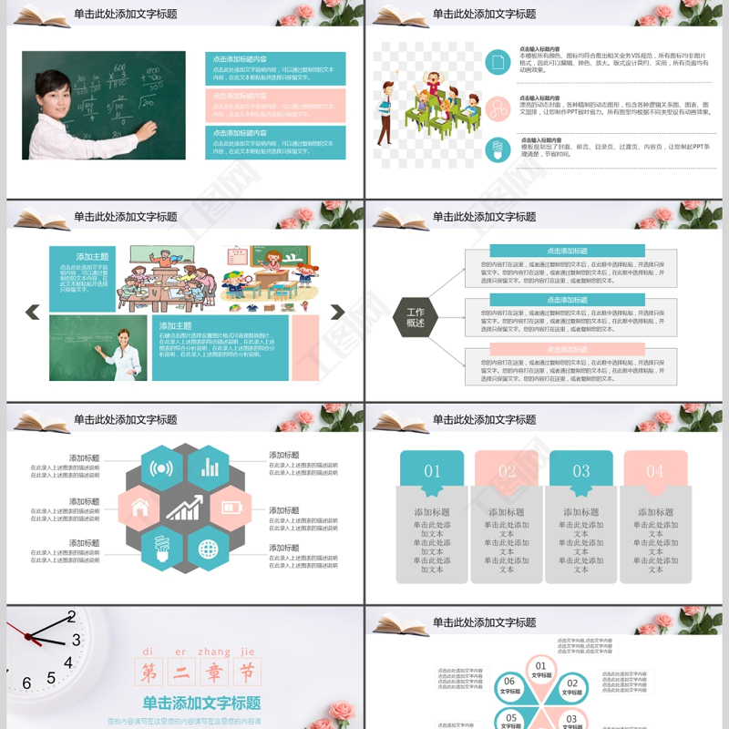 可愛卡通課件教育教學PPT模版包含