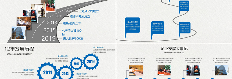 2019進入世界500強2015總產值突破100億2013納斯達克上市2011紐約研究所成立2009上海分公司成立