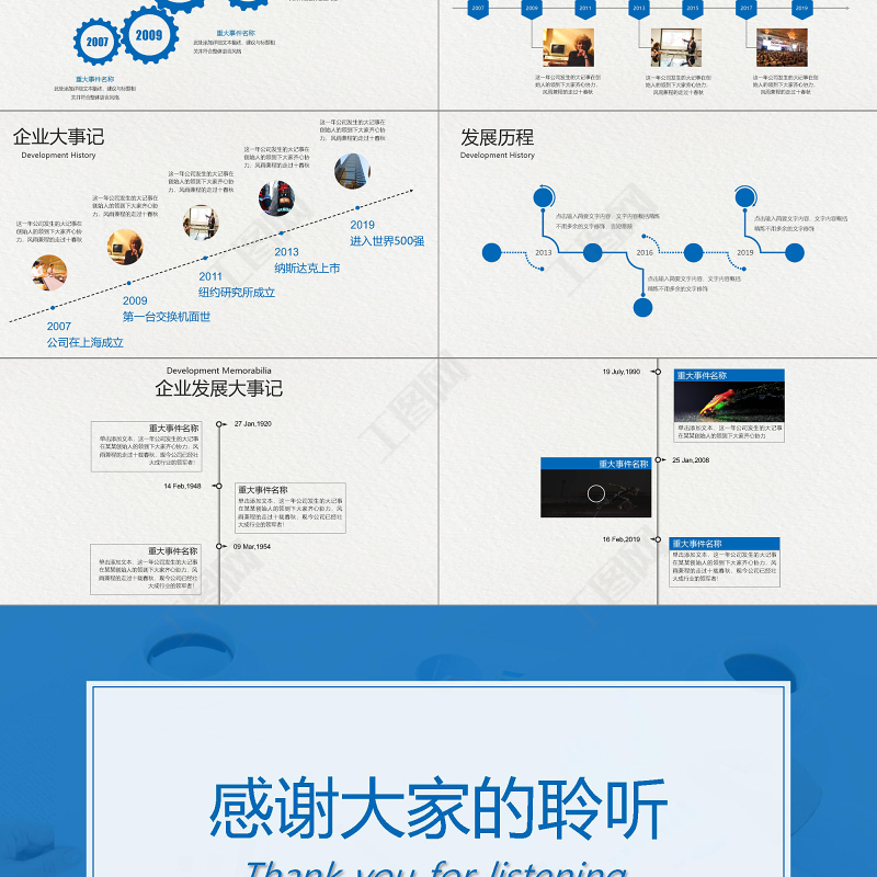 工圖網提供時間軸公司發展歷程企業大事記PPT模板供會員免費下載。更多精彩黨課PPT素材,盡在工圖網。