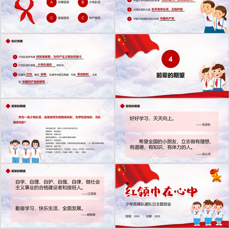 紅領巾,小學生,小學,少先隊,先鋒隊,少年,節(jié)日,主題,活動,紅領巾在心中,PPT模板,黨政 Array