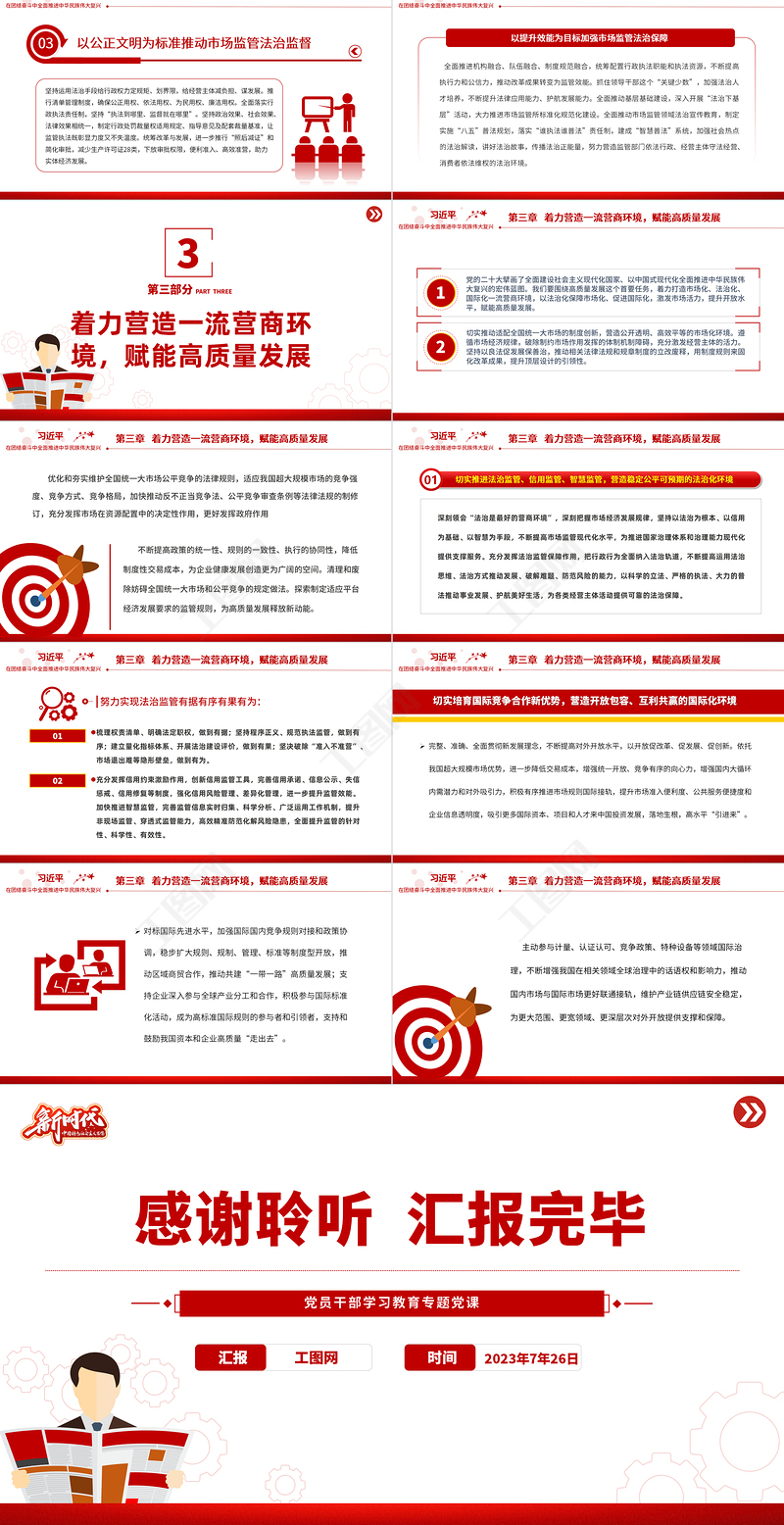 工圖網提供2023以法治化市場監管助力高質量發展PPT大氣精美風黨員干部學習教育專題黨課課件供會員免費下載。更多精彩黨課PPT素材,盡在工圖網。