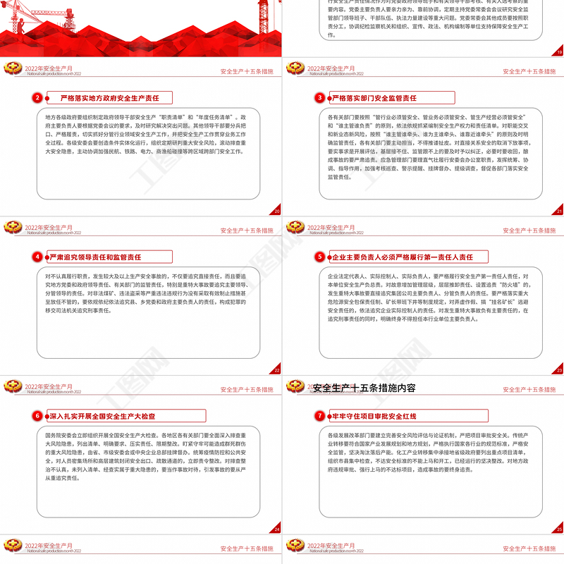 2各地區、各有關部門和單位要廣泛開展安全生產法主題宣傳活動,督促企業法定代表人、實際控制人、實際負責人自覺把安全放在第一位,貫穿工作全過程各方面,切實擔起安全生產"第一責任人"責任,嚴格履行安全生產法規定的7項職責,帶頭尊法、學 法、守法,主動研判風險、排查隱患,向職代會報告安全生產工作情 況,認真組織開展全員應急救援演練和知識技能培訓,積極參加 "第一責任人安全倡議書"活動。加大以案釋法和以案普法的宣傳力度,對企業主體責任落實不到位被實行"一案雙罰"的執法案例、 安全生產行刑銜接的典型案例,以及因發生生產安全事故構成重大責任事故罪的典型案例,加大曝光力度,形成輿論聲勢。廣泛開展"我是安全吹哨人""查找身邊的隱患"等活動,調動職工參與監 督企業和主要負責人落實安全生產責任的主動性和自覺性。·學習2022年全國安全生產月通知
