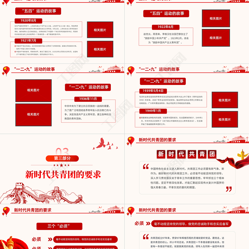 弘揚五四精神爭做合格團員PPT紅色黨政風不忘初心跟黨走青年建功新時代主題團日活動課件模板 Array