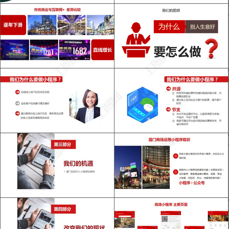 工圖網提供原創商場購物中心小程序營銷推廣招商手冊PPT供會員免費下載。更多精彩黨課PPT素材,盡在工圖網。