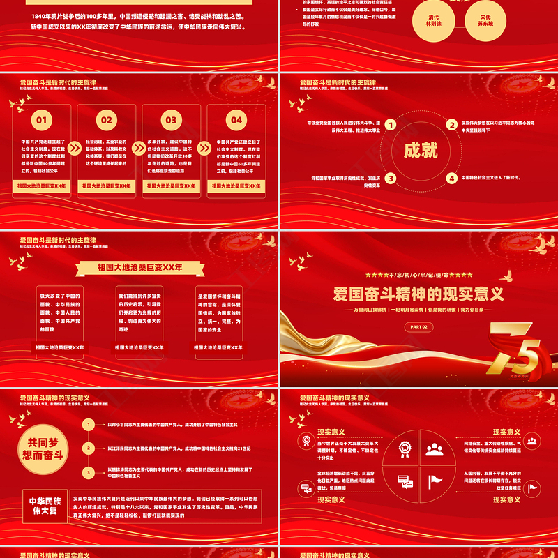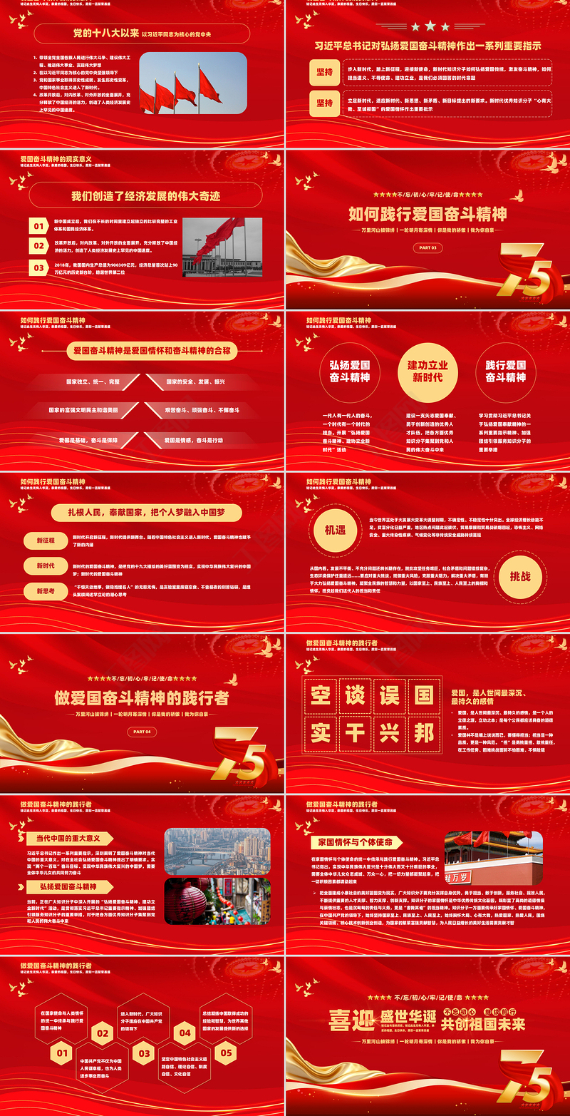2024建國75周年PPT紅色簡潔風盛世華誕共創祖國未來國慶節黨課模板