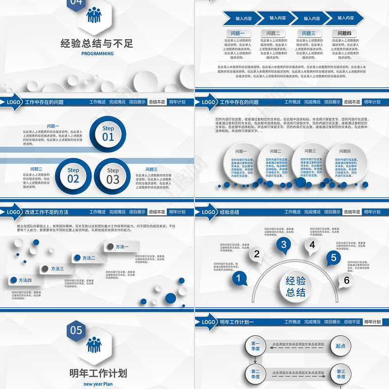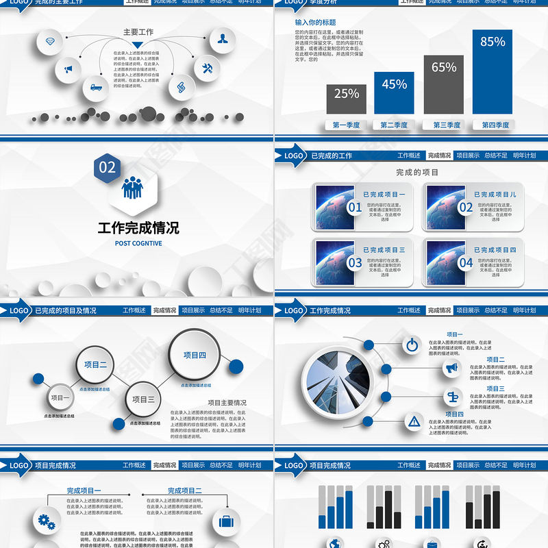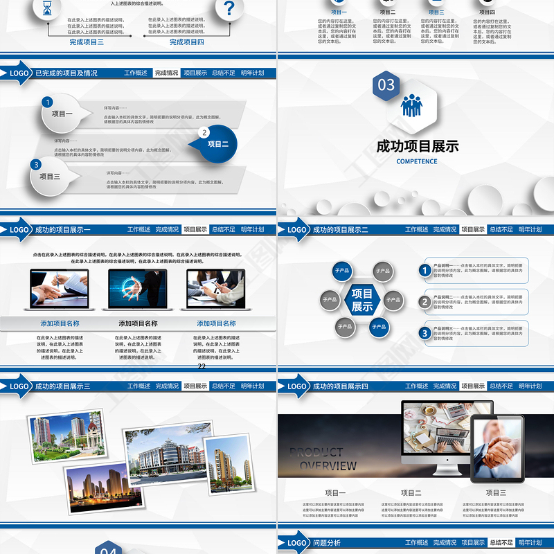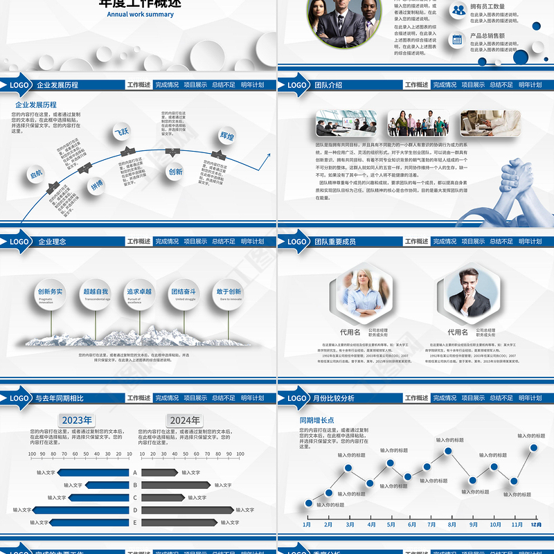 2 工作總結述職匯報PPT模板026 A dream need to work out a summary report dream need to work out a need to work out a summary report summary 歲月流轉,時光飛逝,轉眼間2025年的工作又接近尾聲。 回首過去一年的工作,經過全體領導及員工的共同努力,公司經營業 績保持良好,行業地位、社會形象日漸提升,各項工作全面發展。今年, 面對經濟下行所帶來的影響,公司上下團結一致,奮力拼搏,打了一場漂 亮的安全效益翻身仗。我們不僅在上半年實現了扭虧為贏,而且全年銷售 收入突破了3億元,標志著公司邁上了一個新臺階,步入了一個新的發展 階段。 新起點、新希望。站在2026年的起點,我們將繼承和發揚過去工作中 存在的優點,汲取經驗,摒棄不足,滿懷信心,以更清醒的頭腦、更旺盛 的斗志、更奮發的姿態和更充沛的干勁,向我們的既定目標進發! 前言 Introduction 年度工作概述 工作完成情況 成功項目展示 經驗總結不足 ABOUT ME POST COGNTIVE COMPETENCE PROGRAMMING 1 2 4 3 5 明年工作計劃 PROGRAMMING 目錄 Introduction 01 年度工作概述 Annual work summary 圖形繪 制 完成情況 項目展示 總結不足 工作概述 明年計劃 公司簡介 LOGO 公司介紹 有家(中國)行業有限公司是一家專注于某某產品及服務的綜合性公司,在行業內擁有領先地位。在此錄入上述圖 表的綜合描述說明,在此錄入上述圖表的綜合描述說明。在此錄入上述圖表的綜合描述說明。 右鍵點擊圖片選擇設置 圖片格式可直接替換圖 片。您可以點擊文字框 輸入您的描述說明,或 者通過復制粘貼,在此 錄入您的描述說明。 在此錄入上述圖表的綜 合描述說明,在此錄入 上述圖表的綜合描述說 明,在此錄入上述圖表 的綜合描述說明。 旗下分支機構 在此錄入圖表的描述說明, 在此錄入圖表的描述說明。 擁有員工數量 在此錄入圖表的描述說明, 在此錄入圖表的描述說明。 產品總銷售額 在此錄入圖表的描述說明, 在此錄入圖表的描述說明。 Company Introduction 公司描述 圖形繪 制 完成情況 項目展示 總結不足 工作概述 明年計劃 企業發展歷程 LOGO 201 6 201 7 201 8 201 9 202 0 啟航 拼搏 飛躍 創新 輝煌 企業發展歷程 您的內容打在這里,或者通過復制 您的文本后,在此框中選擇粘貼, 并選擇只保留文字。您的內容打在 這里, 您的內容打在這 里,或者通過復 制您的文本后, 在此框中選擇粘 貼,并選擇只保 留文字。 您的內容打在這 里,或者通過復 制您的文本后, 在此框中選擇粘 貼,并選擇只保 留文字。 您的內容打在這 里,或者通過復 制您的文本后, 在此框中選擇粘 貼,并選擇只保 留文字。 您的內容打在這 里,或者通過復 制您的文本后, 在此框中選擇粘 貼,并選擇只保 留文字。 您的內容打在這 里,或者通過復 制您的文本后, 在此框中選擇粘 貼,并選擇只保 留文字。 圖形繪 制 完成情況 項目展示 總結不足 工作概述 明年計劃 團隊介紹 LOGO 團隊是指擁有共同目標,并且具有不同能力的一小群人有意識的協調行為或力的系 統,是一種應用廣泛、靈活的組織形式。對于大學生創業團隊,可以說由一群具有 創新意識、擁有共同目標、有著不同專業知識背景的朝氣蓬勃的年輕人組成的一個 不可分割的整體。這群人就如同人的五官一樣,共同協作維持一個人的生存,缺一 不可。如果沒有了其中一個,這個人將不能健康的活著。 團隊精神尊重每個成員的興趣和成就,要求團隊的每一個成員,都以提高自身素 質和實現團隊目標為己任。團隊精神的核心是合作協同,目的是最大發揮團隊的潛 在能量。 圖形繪 制 完成情況 項目展示 總結不足 工作概述 明年計劃 企業理念 LOGO 創新務實 超越自我 追求卓越 團結奮斗 敢于創新 Pragmatic innovation Transcendental ego Pursuit of excellence United struggle Dare to innovate 您的內容打在這里,或者通過復制您的文本后,在此框中選擇粘貼,并選 擇只保留文字。在此錄入上述圖表的綜合描述說明。 圖形繪 制 完成情況 項目展示 總結不足 工作概述 明年計劃 代用名 公司總經理 職務或頭銜 在這里輸入主要的職業經驗及任職主要機構等等,如:某大學工 商學院研究生,有十余年行業經驗,是某領域領軍人物。 1992年在某公司擔任中層管理;2003年任某公司執COO;2007 年擔任某公司執行總裁。曾于某年、某年、2015年分別獲得某某獎項。 代用名 公司總經理 職務或頭銜 在這里輸入主要的職業經驗及任職主要機構等等,如:某大學工 商學院研究生,有十余年行業經驗,是某領域領軍人物。 1992年在某公司擔任中層管理;2003年任某公司執COO;2007 年擔任某公司執行總裁。曾于某年、某年、2015年分別獲得某某獎項。 團隊重要成員 LOGO 圖形繪 制 完成情況 項目展示 總結不足 工作概述 明年計劃 與去年同期相比 LOGO 10 20 30 40 50 60 70 80 90 100 10 20 30 40 50 60 70 80 90 100 輸入文字 輸入文字 輸入文字 輸入文字 輸入文字 輸入文字 輸入文字 輸入文字 輸入文字 輸入文字 A B C D E 2023年 您的內容打在這里,或者通過復制您的文本后, 在此框中選擇粘貼,并選擇只保留文字。您的 內容打在這里, 2024年 您的內容打在這里,或者通過復制您的文本后, 在此框中選擇粘貼,并選擇只保留文字。您的 內容打在這里, 圖形繪 制 完成情況 項目展示 總結不足 工作概述 明年計劃 月份比較分析 LOGO 1月 2月 3月 4月 5月 6月 7月 8月 9月 10月 11月 12月 同期增長點 輸入你的標題 輸入你的標題 輸入你的標題
