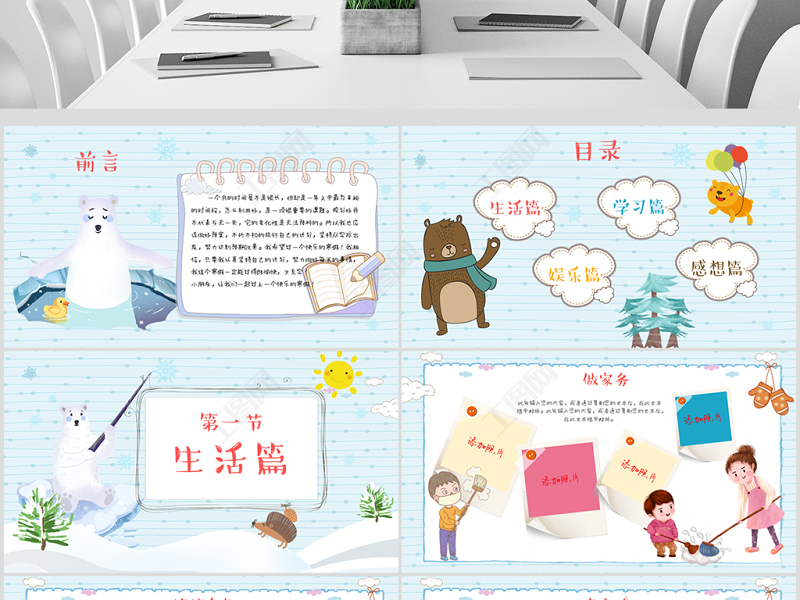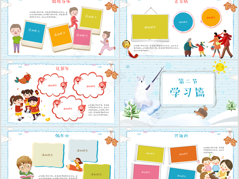 原創我的寒假生活卡通電子相冊寒假生活PPT-版權可商用包含