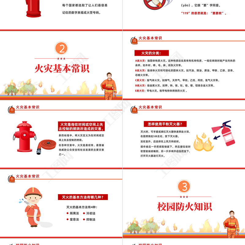 2022關(guān)注消防PPT卡通插畫(huà)風(fēng)中小學(xué)生119消防日主題班會(huì)課件模板下載 Array