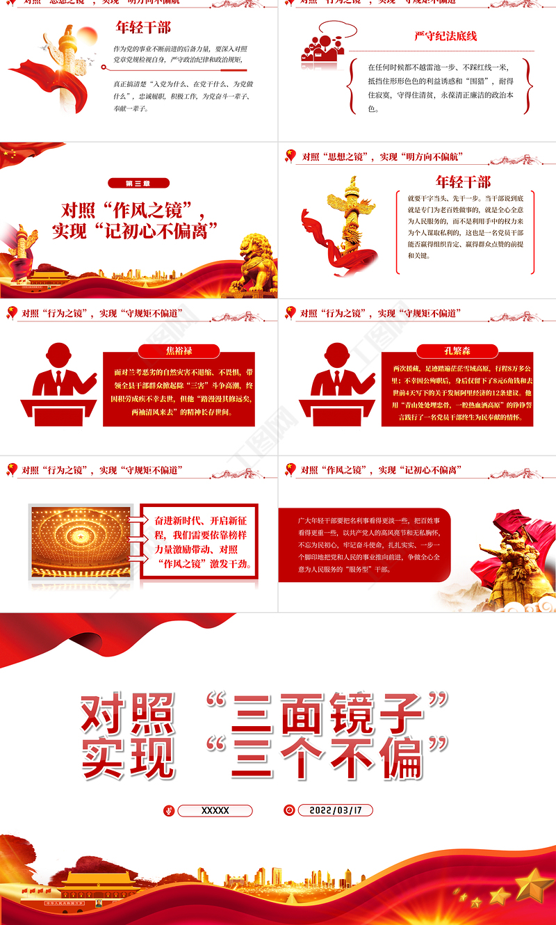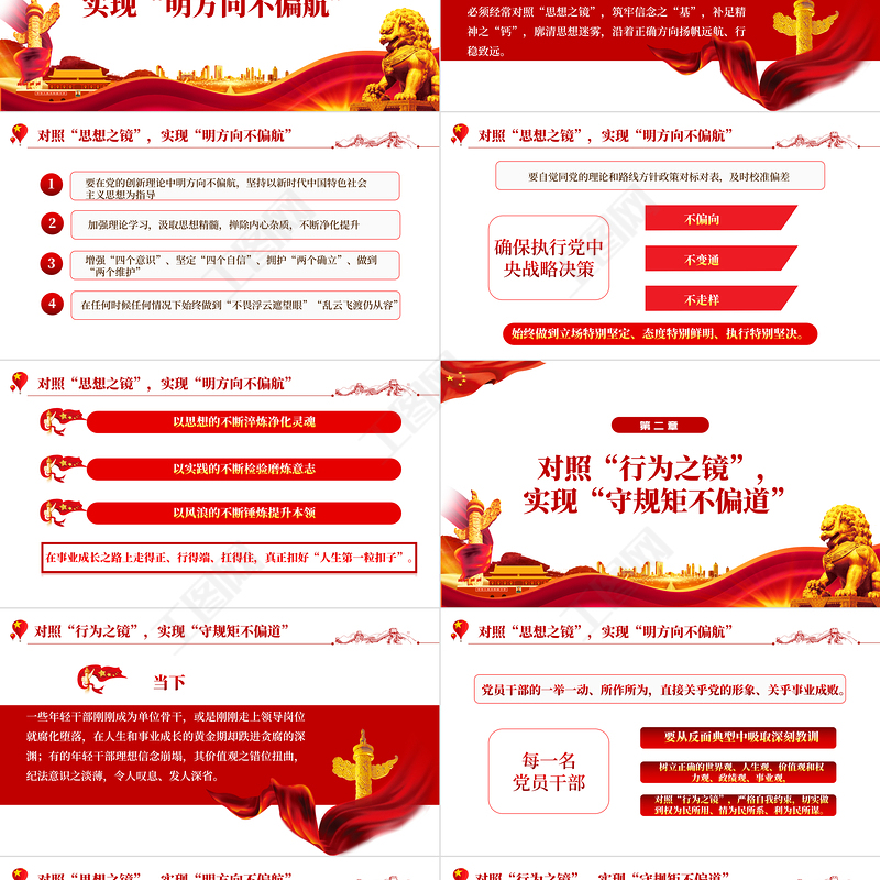 對照三面鏡子實現(xiàn)三個不偏PPT紅色大氣風2022年國企機關事業(yè)單位主題黨日黨課學習課件模板下載 Array