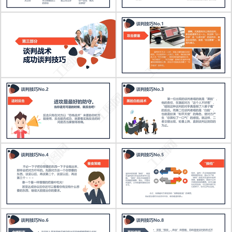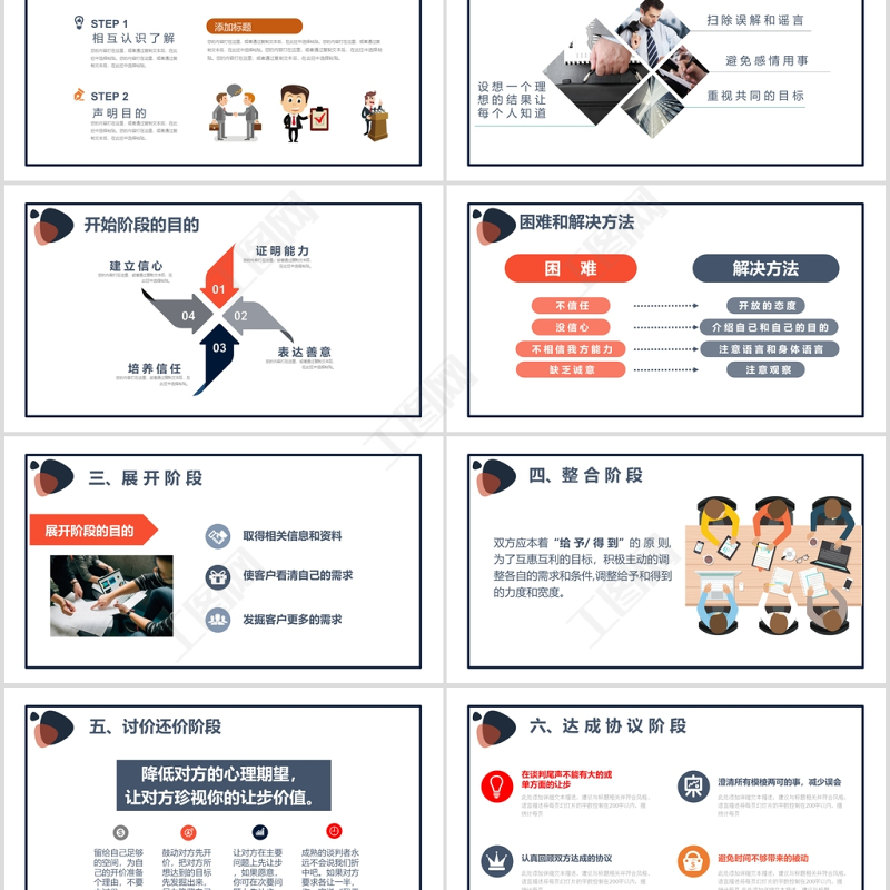 工圖網(wǎng)提供簡(jiǎn)約企業(yè)商務(wù)談判六個(gè)階段技巧培訓(xùn)PPT供會(huì)員免費(fèi)下載。更多精彩黨課PPT素材,盡在工圖網(wǎng)。