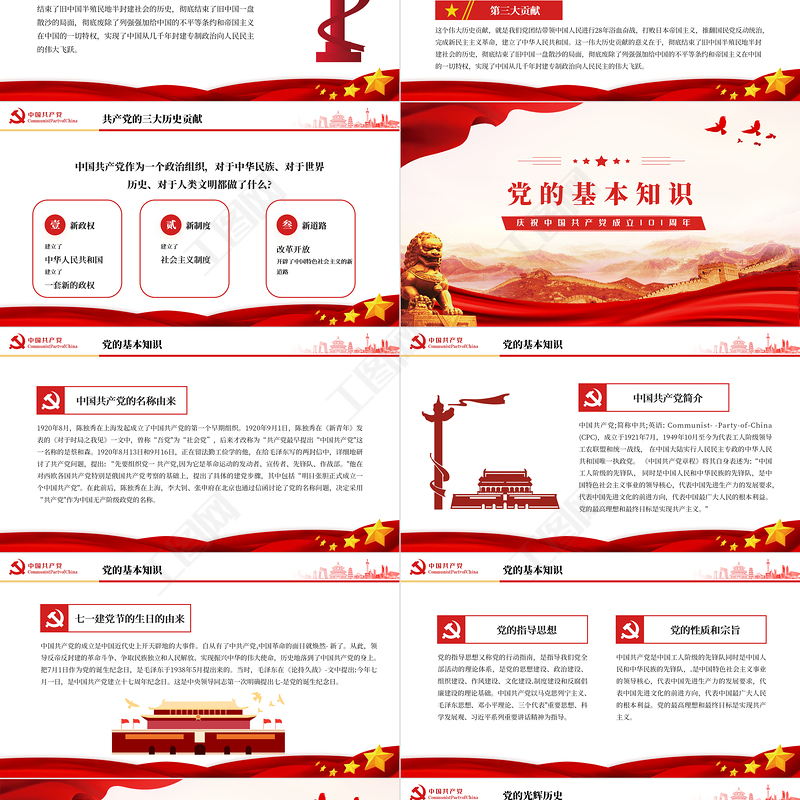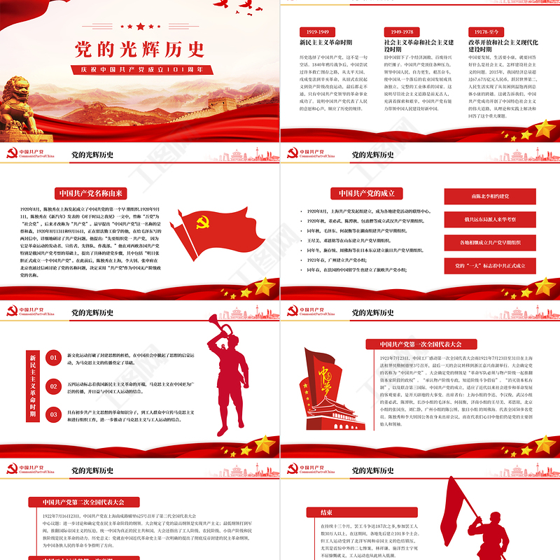 建黨101周年PPT紅色黨政風慶祝中國共產黨成立101周年主題課件模板 Array