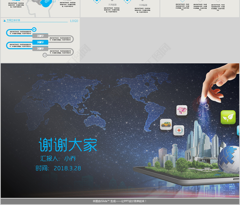 2021年終總結ppt精美藍色互聯網公司科技感工作計劃模板包含