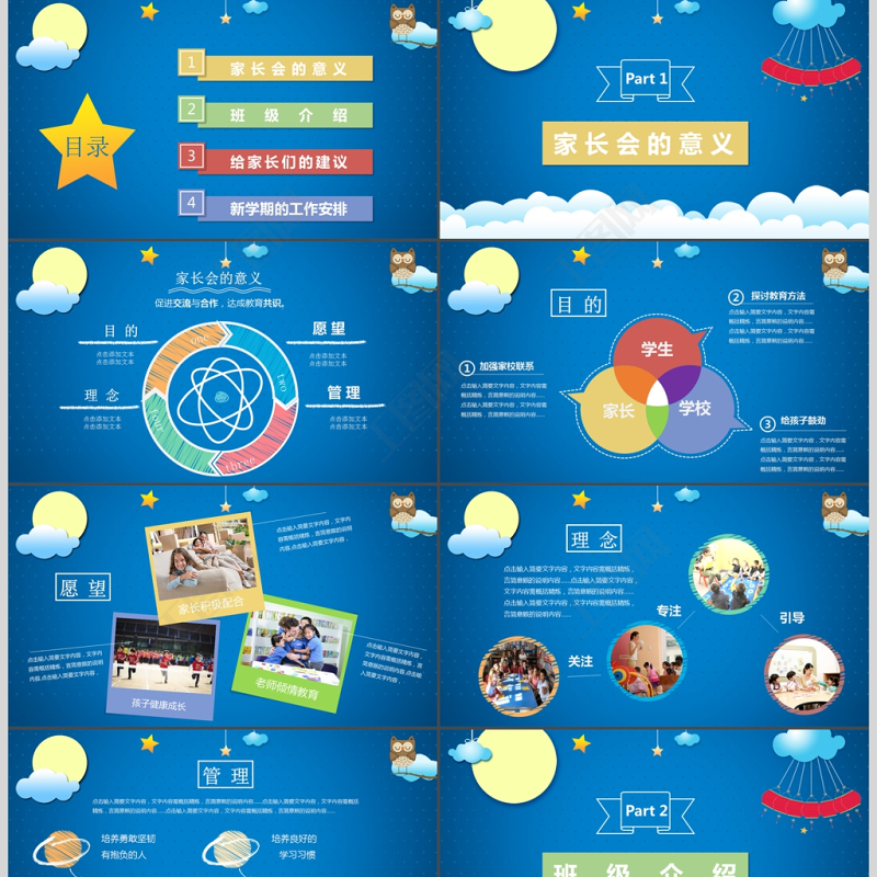 可愛卡通小學幼兒園新學期家長會ppt Array