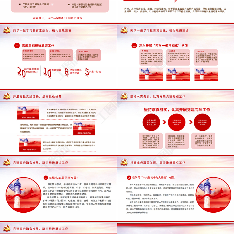 2020工作開展情況2020年我支部主要從六個方面發(fā)力,推動黨建工作的開展:堅持求真務(wù)實,認真開展黨建專項工作黨建業(yè)務(wù)融合發(fā)展,穩(wěn)步推進重點工作學(xué)習(xí)宣傳十九大精神,落實新時代黨建總要求456