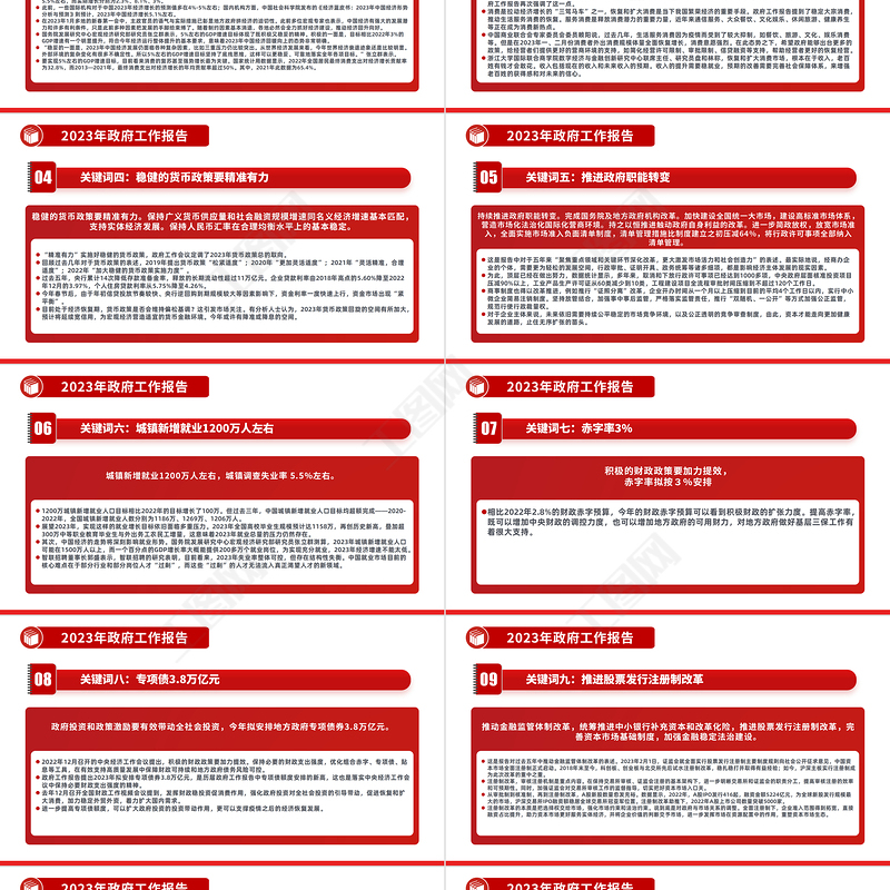 2023年政府工作報(bào)告31個(gè)關(guān)鍵詞學(xué)習(xí)解讀PPT簡(jiǎn)約黨政風(fēng)深入學(xué)習(xí)政府工作報(bào)告專題黨課課件模板下載 Array