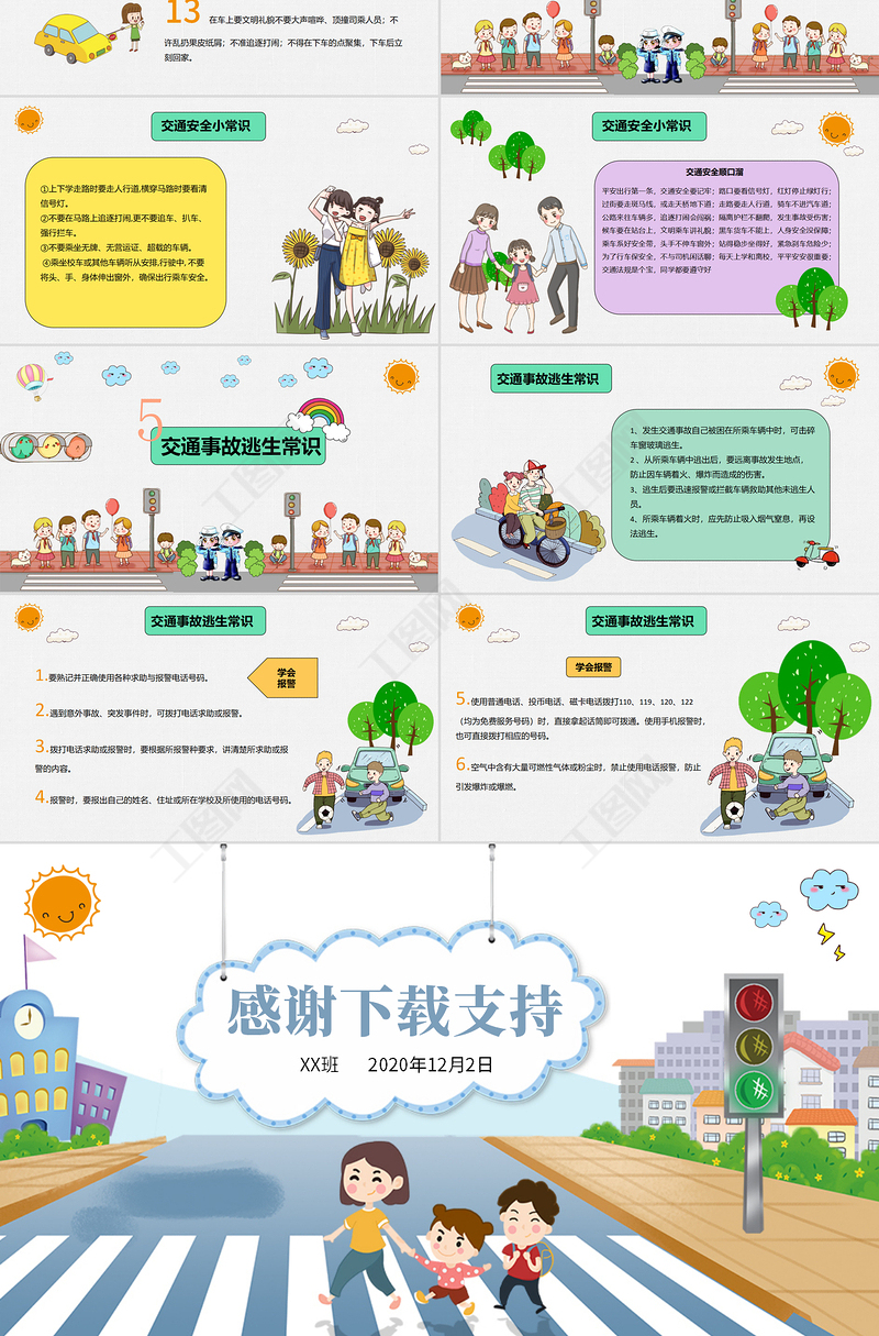 工圖網提供卡通版交通教育安全日PPT模板供會員免費下載。更多精彩黨課PPT素材,盡在工圖網。