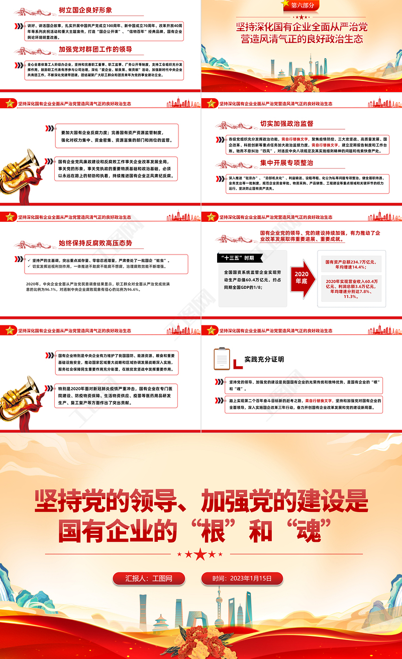 工圖網提供2023堅持黨的領導加強黨的建設國有企業的根和魂PPT大氣黨建風黨員干部學習教育專題黨課黨建課件模板供會員免費下載。更多精彩黨課PPT素材,盡在工圖網。
