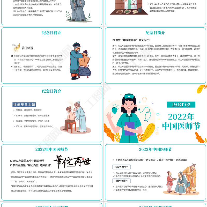 工圖網(wǎng)提供2022醫(yī)者仁心PPT中國風(fēng)中國醫(yī)師節(jié)宣講介紹課件模板供會員免費下載。更多精彩黨課PPT素材,盡在工圖網(wǎng)。